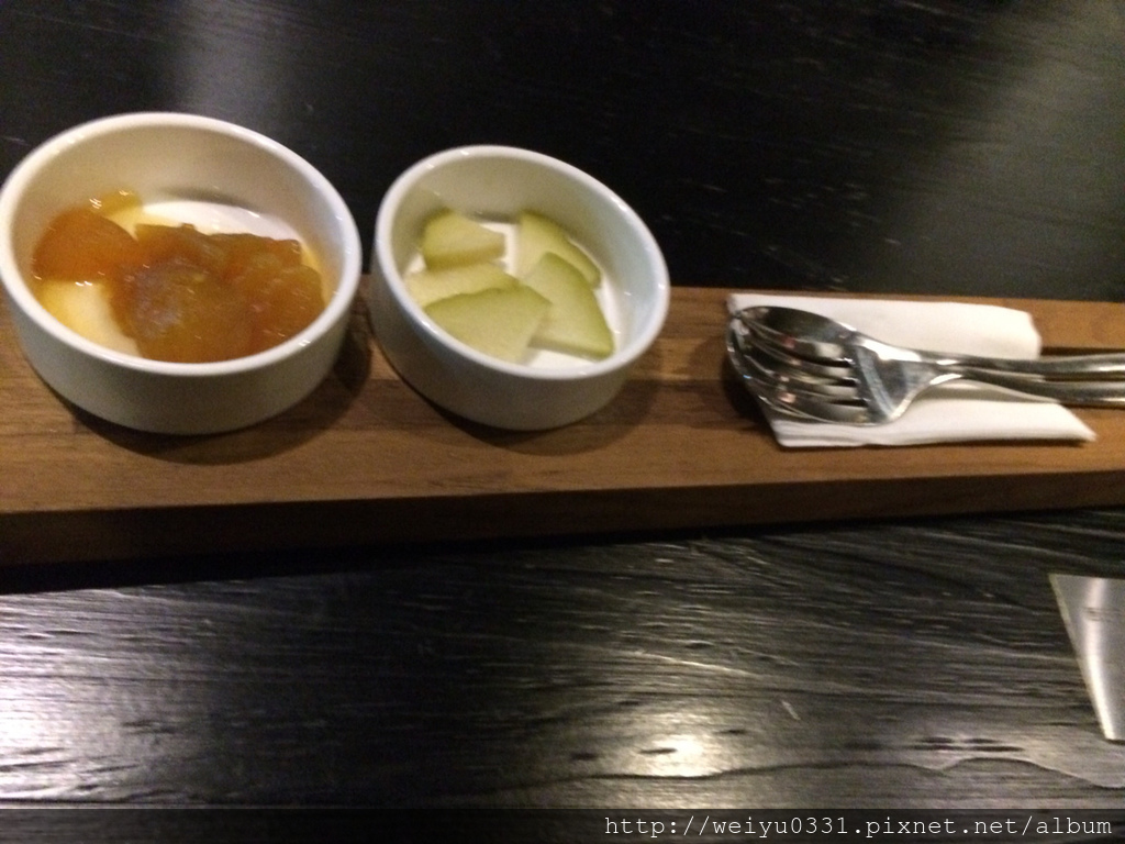 只要點主餐就有的前菜,酸瓜有點酸,覺得應該要配飯,不過左邊的蜜番薯令人驚艷,真的可以為了想吃蜜番薯再來一次的那種不誇張,甜而不膩,而且有別於外面的傳統口味,真的很新鮮、特別。