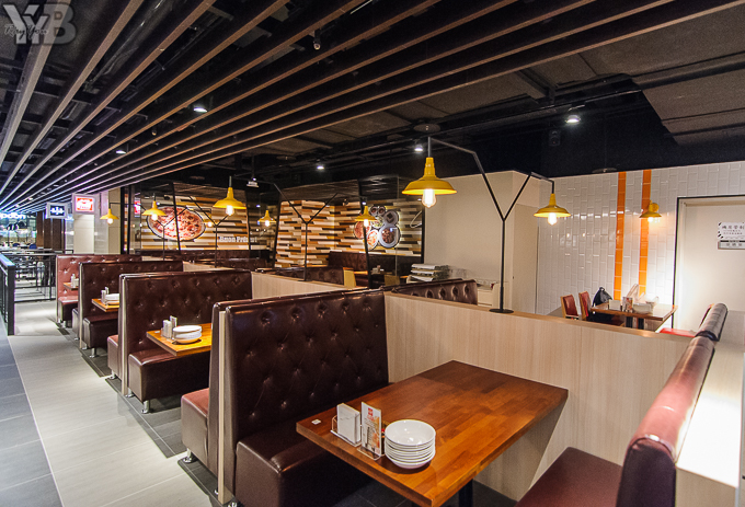 餐廳內的座位設計相當多元,靠近走道旁的半開放式座位以舒適的長型沙發為主~