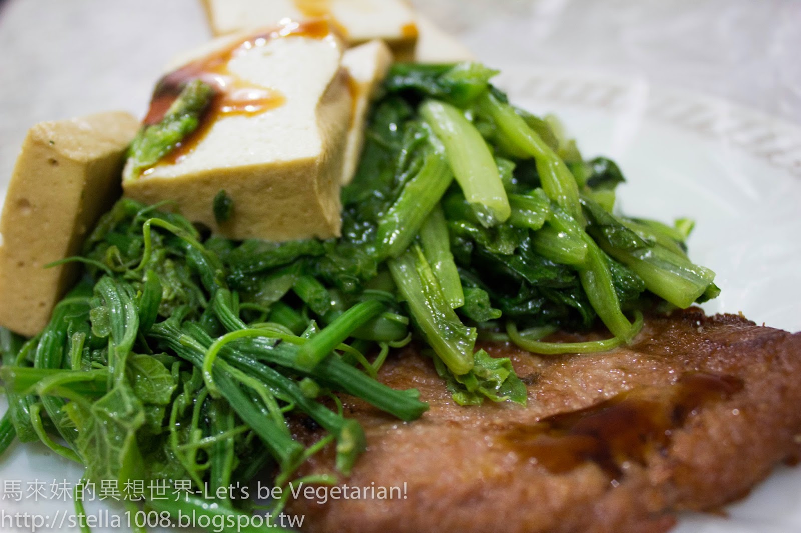 之前是筍子湯,其清甜的口味,歐歐可是喝了3-4碗啊~這是歐歐點的素煎排飯 70元,還可以再自己點3道菜