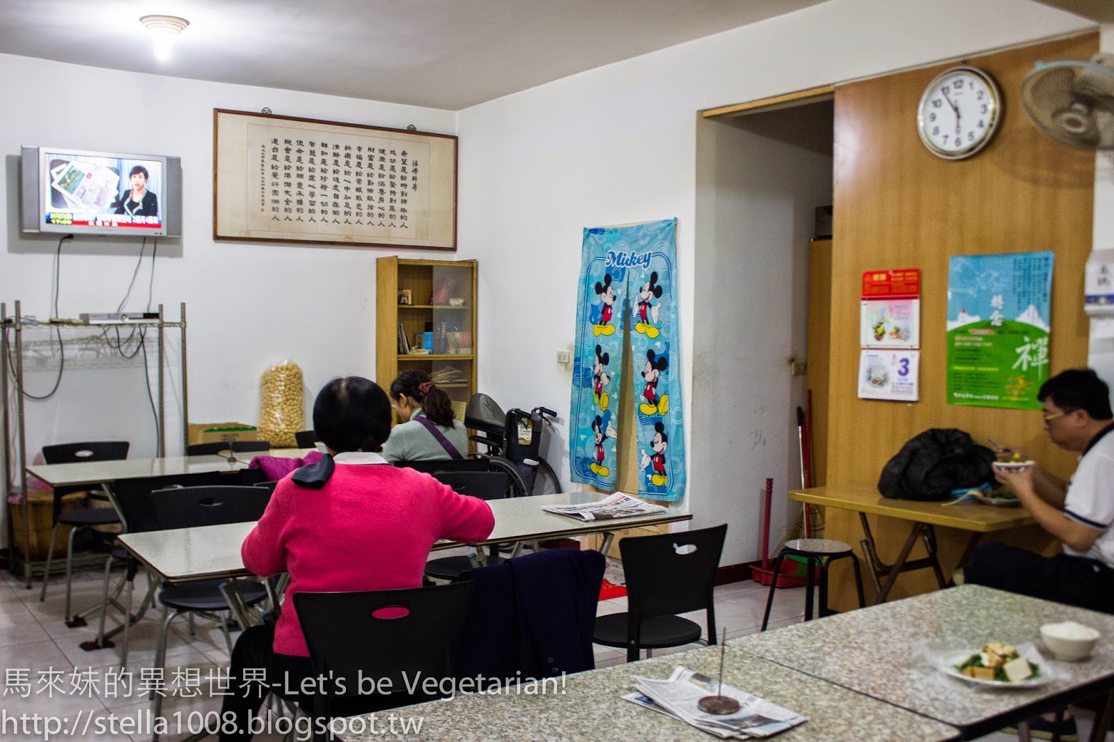 往左一看,就是用餐的環境,簡單的桌椅擺設。前面還有電視機呢,讓妳吃飯的同時也關心時事~