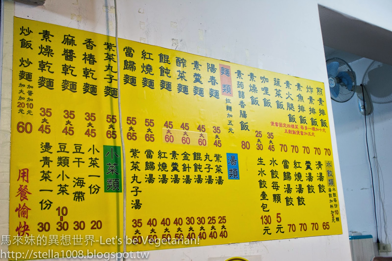 還有各種湯麵和飯菜和水餃呢,價錢大概在25-70元內,是不是另個一個銅板素食啊~~