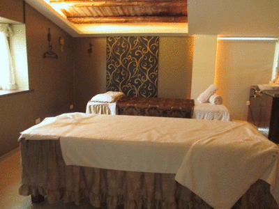 這是間同時可以有兩個人一起按摩的雙人房,除了洗手台、獨立廁間、