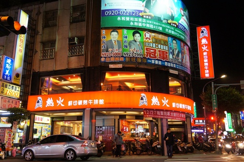 [ 熱火鮮切碳烤牛排館 ]位在永和區保平路的角間,