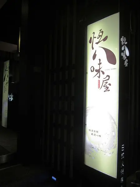 分成兩側的用餐區,一側是「山越壽司」;另一側則是「海月火鍋」,山珍海味必定可以滿足每位走進來的村民。從二樓往下俯視,看著人來人往,一盞盞芥末綠燈籠懸掛半空中,倒映下方水池,波光閃閃,彷彿走入一個夢境呀。