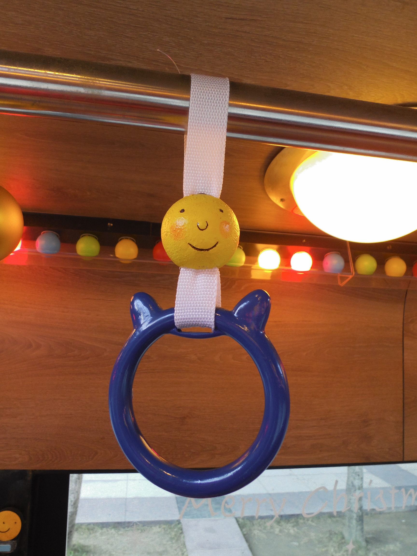 公車的後座有對著遊客微笑的倒映月亮,使人心都溫暖了起來。