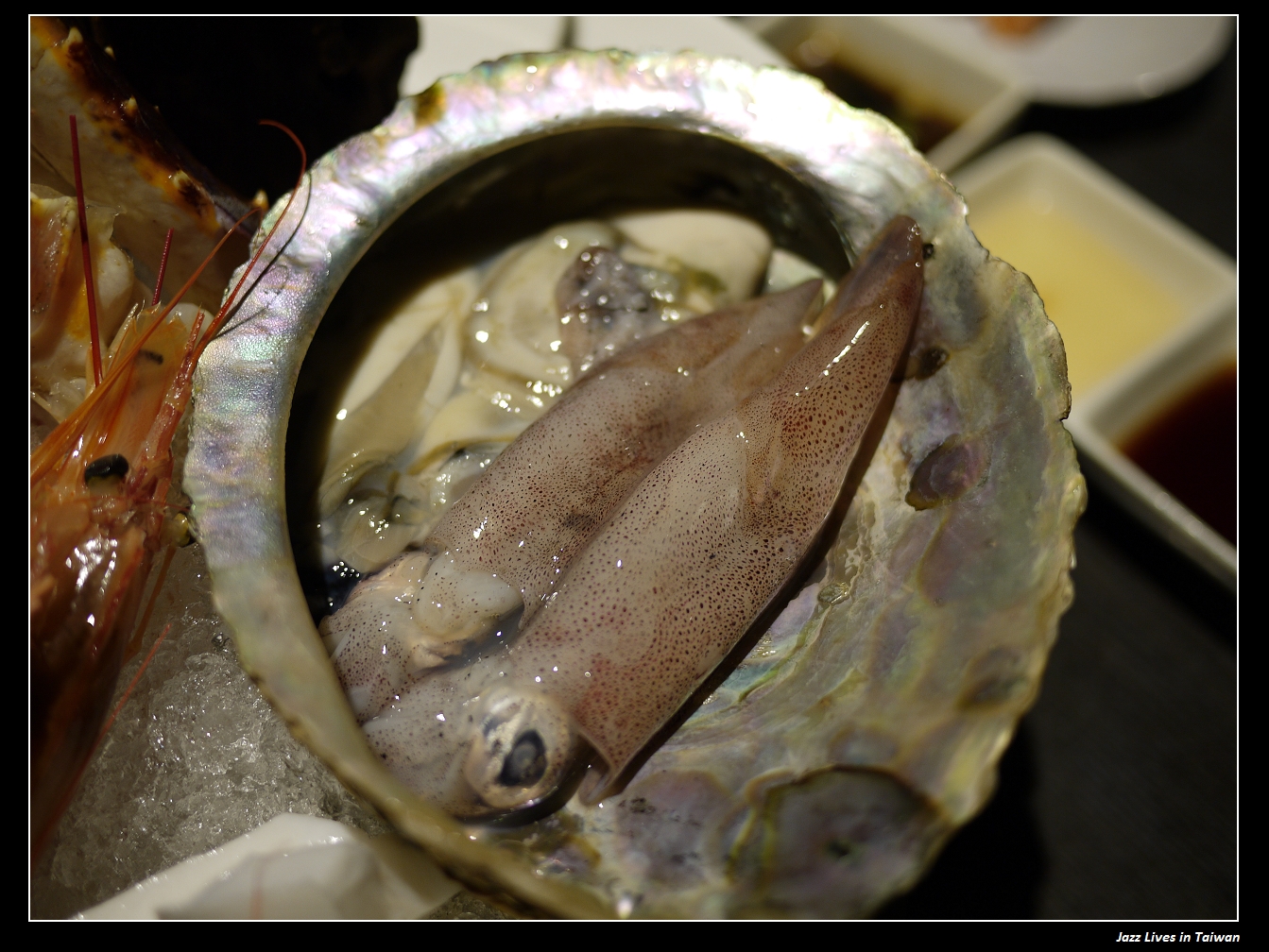 生干貝與生蝦, 這兩個都很鮮甜, 不過只有一人一口, 不能續, 很可惜,