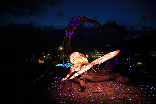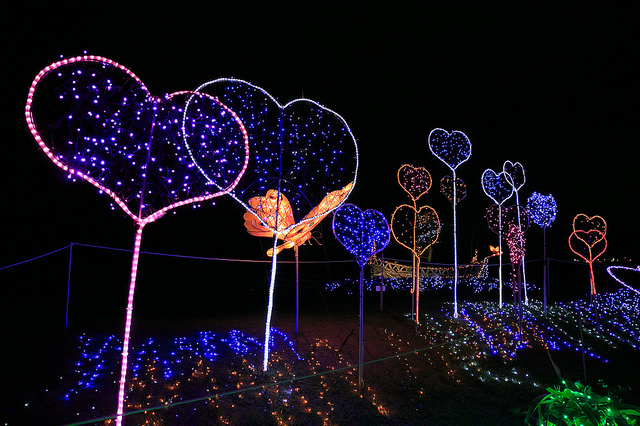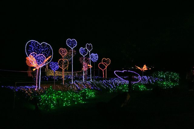 這裡的燈海是以「七彩之心」為主題,在黑夜裡特別的醒目,
