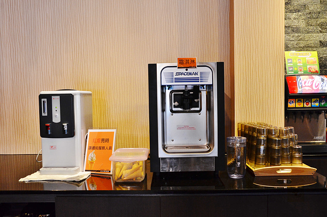 沒想到店內竟然有這台機器,聽說一台不便宜,重點是吃不用錢阿,想吃幾捲就吃幾捲,想吃多高就多高,這根本是超吸引客人的必殺技,現在去麥當勞一隻還要18元呢,一旁則是開水飲水機。