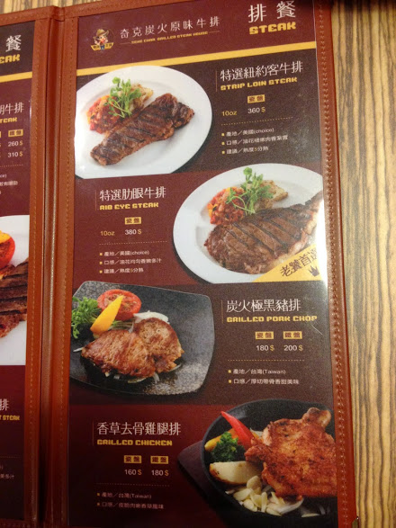 有分瓷盤、鐵盤,12oz價位分別NT240、260,16oz NT290、310 美國牛