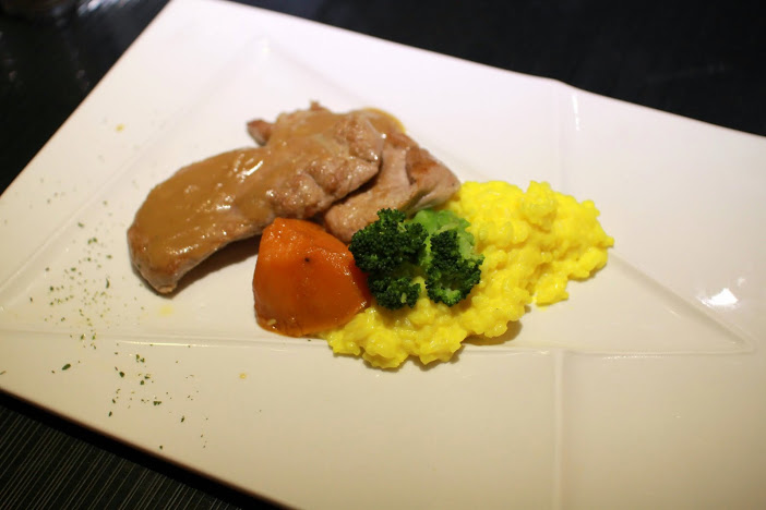 因為沒有炭烤的香味,直接淋上甜甜的紅酒醬汁,只能說是豬排不是炭烤豬菲力!