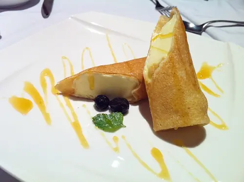 平凡無奇的外表,卻有雙龍搶珠的感覺,因為芒果醬的味道超好吃、超濃。但是奶酪奶味一定要重,現在是夏天快秋天其實是牛奶的淡季,因為太熱了所以牛奶很稀如果你發現奶酪夏天的味道也很重有兩種可能,就是老闆加了高級鮮奶油(低級的油份太多不能用,化學物太多也不能用,因為是要補牛奶的不足呀!),另外一種就是香精。我寧可相信老闆是加了鮮奶油所以味道才那麼濃,因為奶酪很扎實,沒有水水的感覺所以不像是香精可以騙人的!所以如果有想要點甜點的人是可以試試看的。要不然就跟老闆聊聊囉!我想阿沙力的老闆應該是很樂意請大家試味道的!