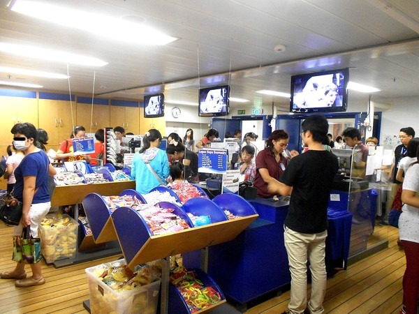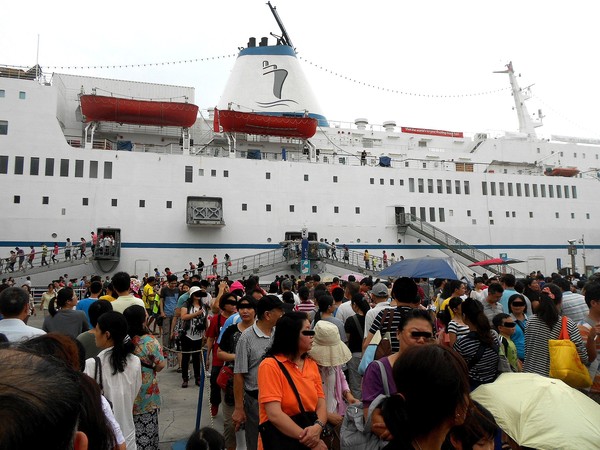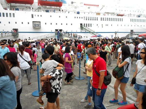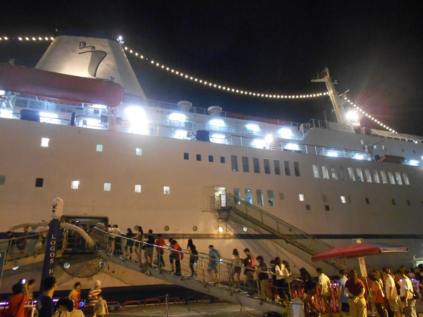 我們在香蕉碼頭排了45分鐘才得以上到船艙 ...