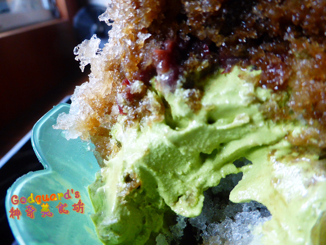 抹茶雖然不至於被焙茶糖漿蓋過,卻也不是很明顯誒⋯⋯但是利用刨冰保持霜淇淋的低溫、