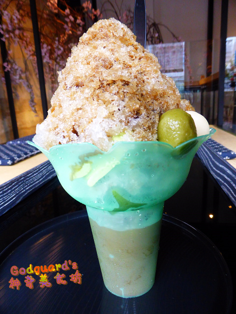 本來我是要點焙茶藏心刨冰,但是今日焙茶口味的霜淇淋沒有提供,我就動了個歪腦筋、請店員幫我做成「焙茶刨冰X抹茶霜淇淋」一舉兩得
