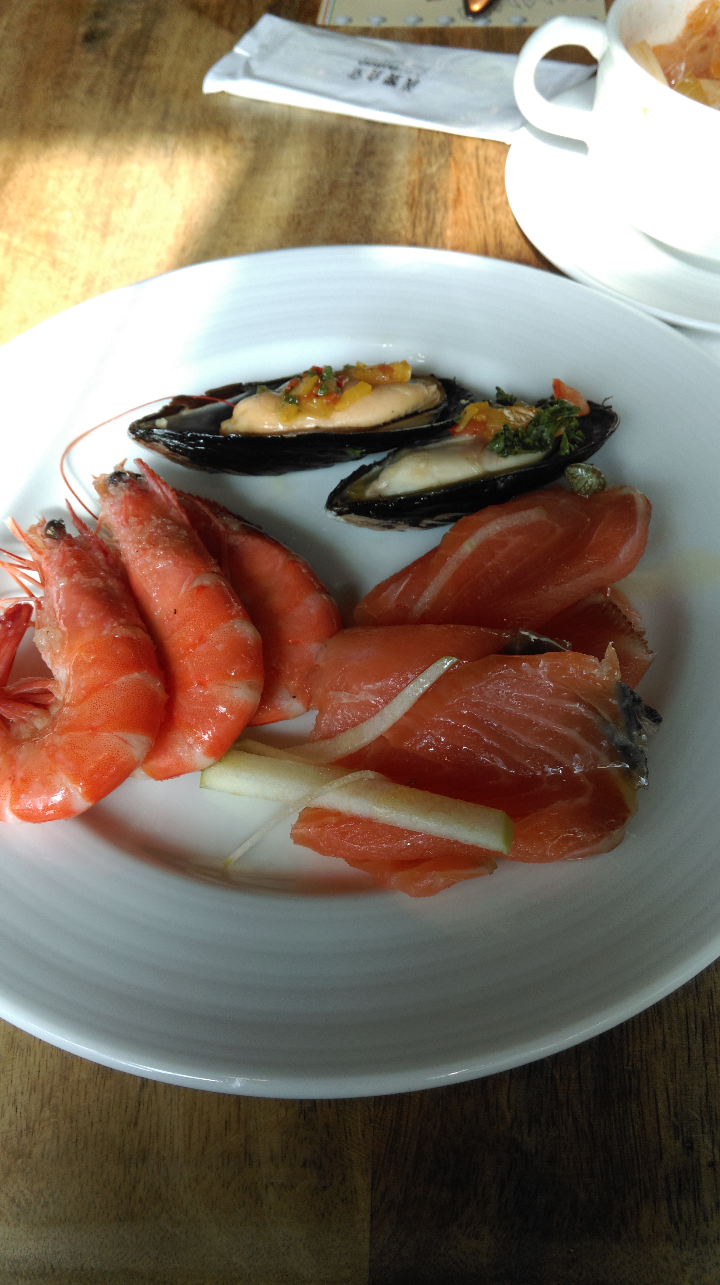 涼拌菜 蝦子淋橄欖油 燻鮭魚 好吃~我吃了很多