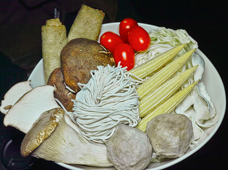 除了高麗菜外, 有好吃會噴汁的香菇貢丸, 杏鮑菇, 新鮮香菇, 韓國魚板 , 小蕃茄, 麵, 玉米筍
