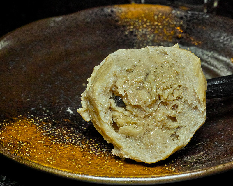 或者這個老闆提醒過會噴汁, 結果還是咬開噴到身上的貢丸, 特色是裡面還包了肉餡( 以及會噴人 )