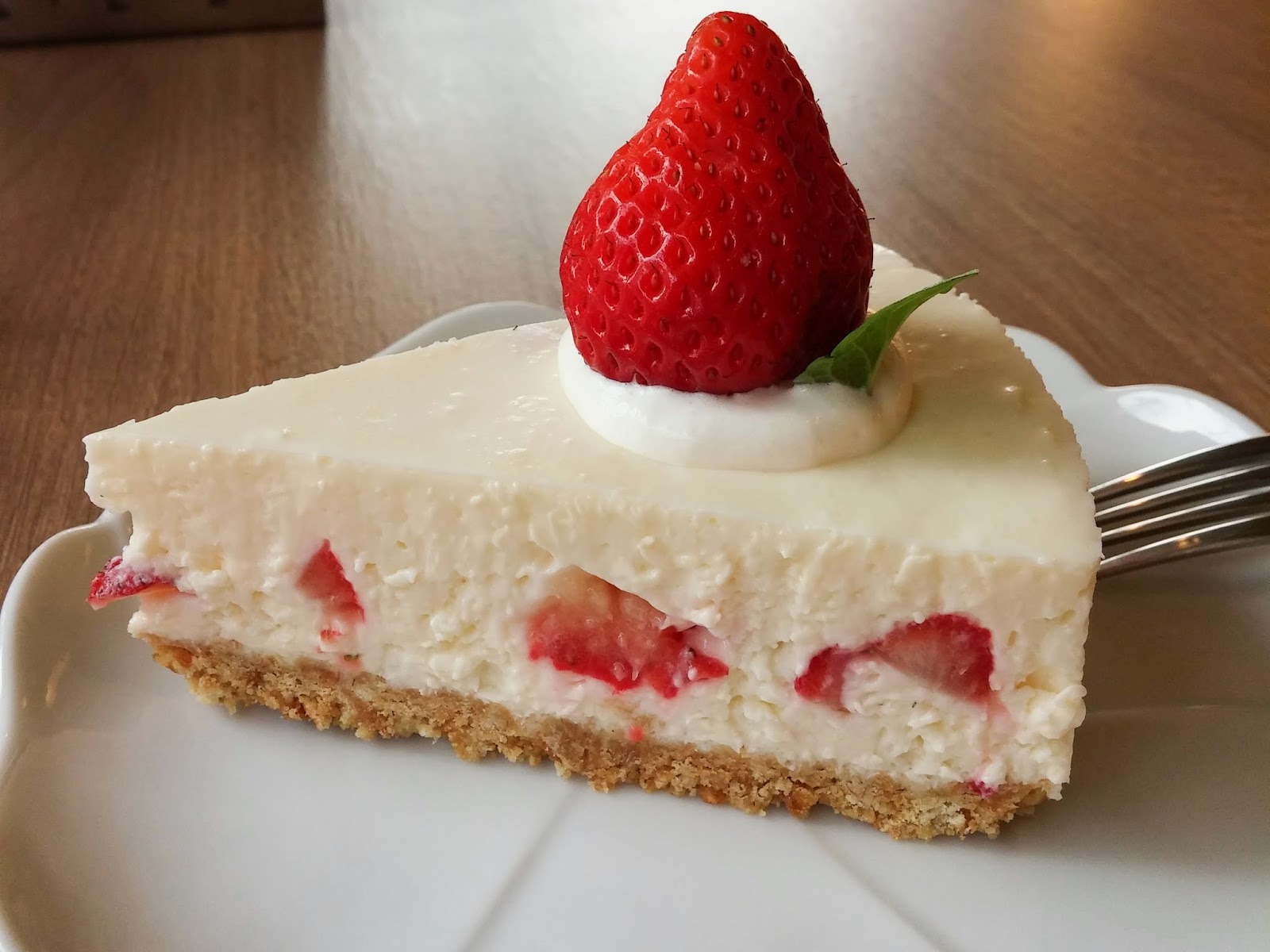 比較特殊的是蛋糕體加了優格,會呈現一種微酸的口味,蛋糕體本身比較像硬一點的布丁,最下層的餅乾不錯吃,比卡爾地鬆軟些,而且會愈嚼愈香。比較起來我還是比較喜歡卡爾地的生乳酪蛋糕。