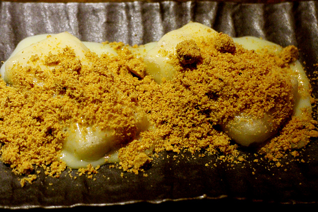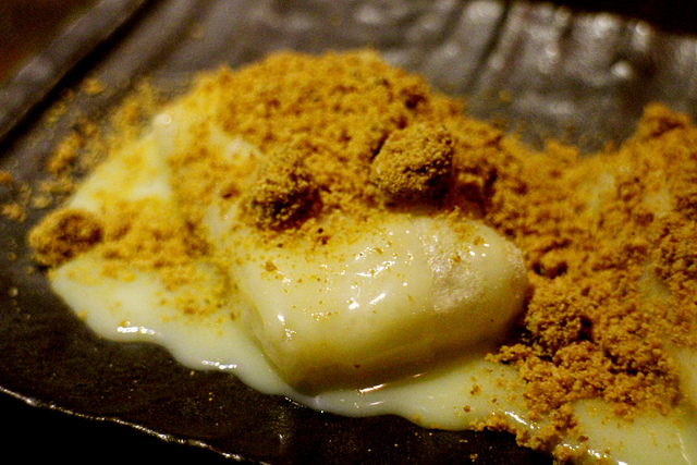 淋上滿滿煉乳的麻糬裹著豐厚的花生粉
