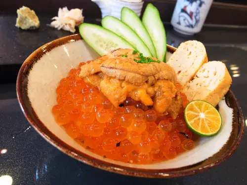 這一天卻竟然多放了滿滿的鮭魚卵,花枝以及甜蝦等等,