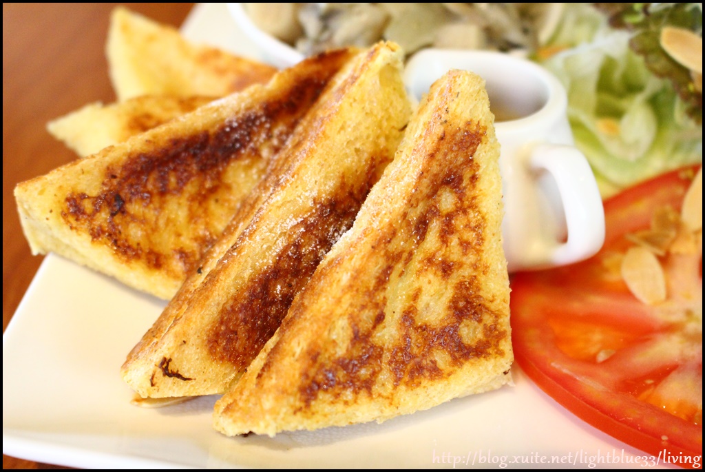 法式土司外酥內軟,淋了蜂蜜之後甜中帶鹹,讓人一下子就吃光光