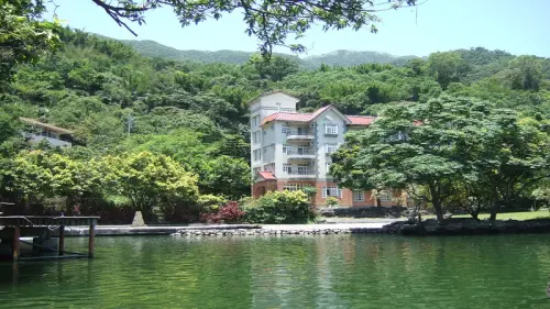 這片水池還可以划竹筏和釣魚,還蠻酷的
