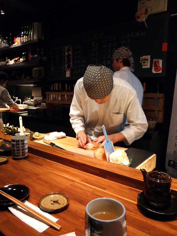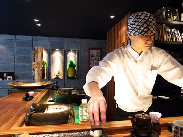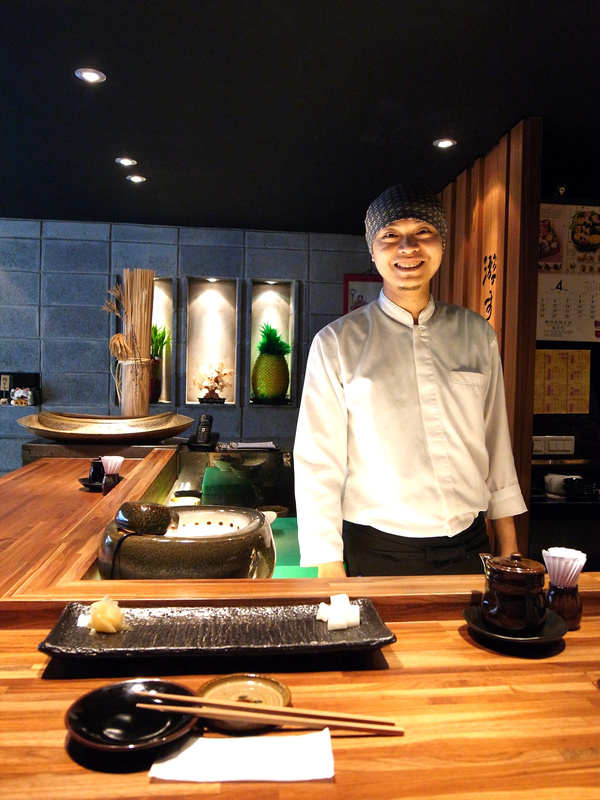觀察師傅們正細心地製做壽司順便與阿不拉聊了一會兒,