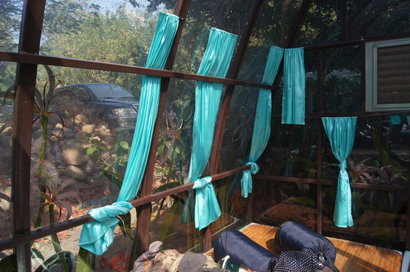 阿拱屋裡本來沒有窗簾的,礙於客人反應不好更換衣服之類的,所以才加上窗簾。夜晚想看星星的時候,窗簾再拉開。