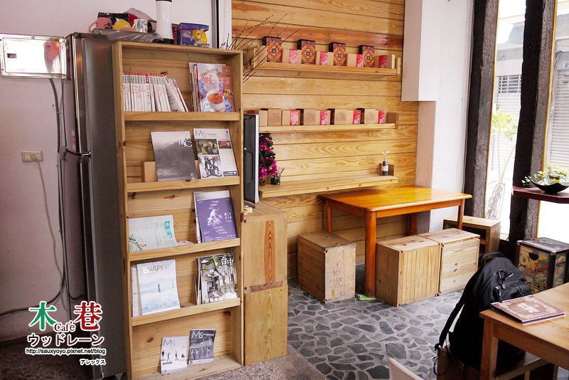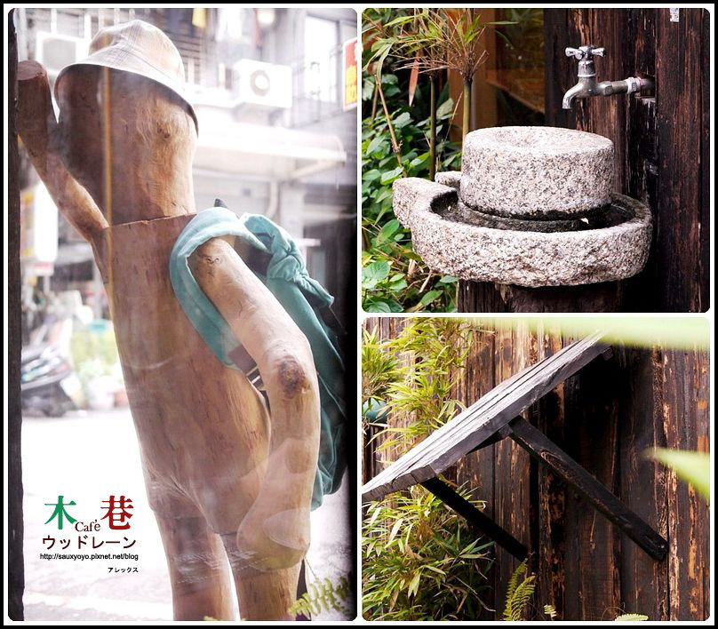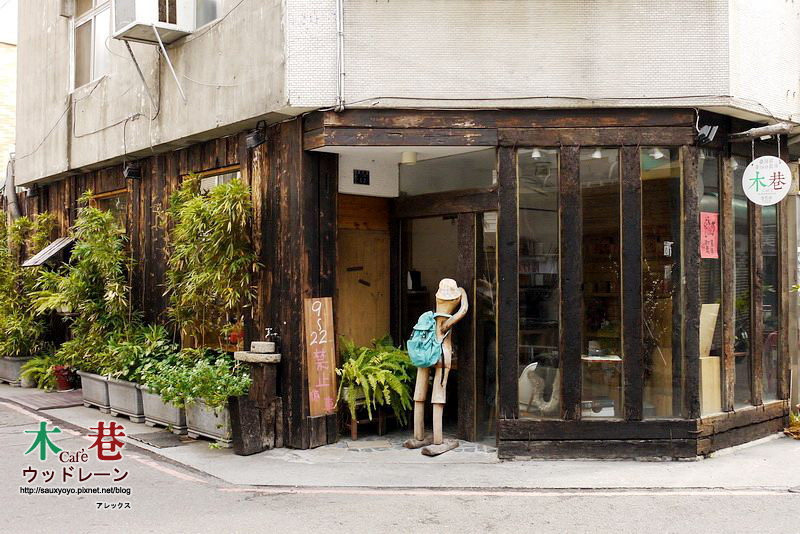 木巷咖啡就位在逢甲路巷弄內很好找,到達就看到店外有個小木頭背包客正在探頭看著店內很可愛,