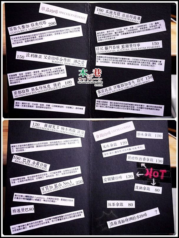 木巷咖啡的MENU