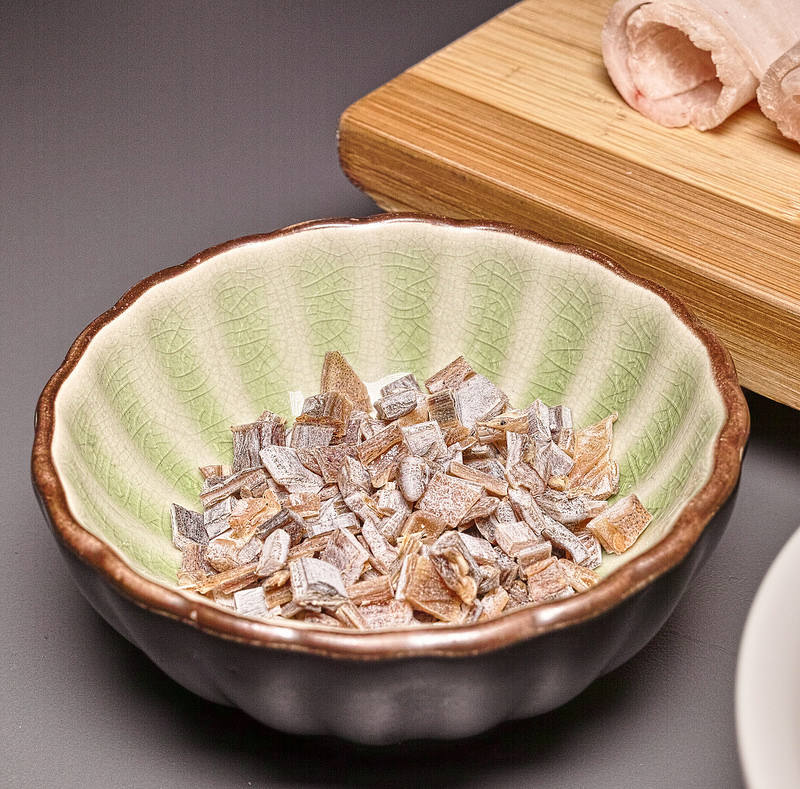 搭配一起上的有這個九濤石頭火鍋爆香的秘訣: 魷魚片