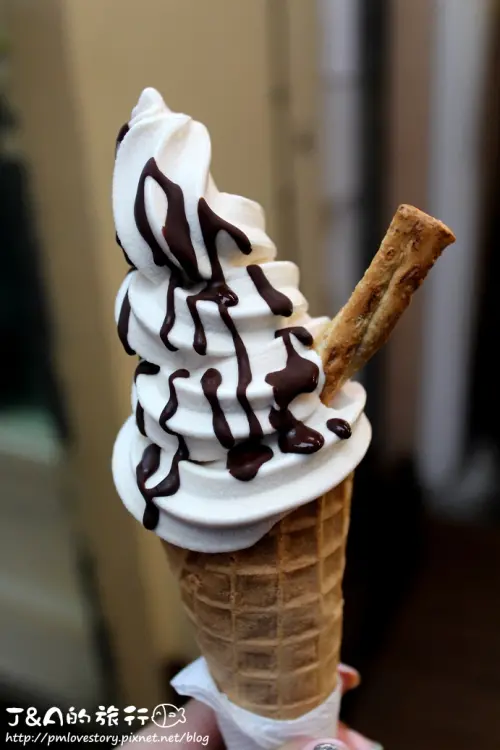 這時候客人拿起噴粉機開始噴可可粉在霜淇淋上,哇塞~好特別的體驗阿!不僅有得吃又可以玩,果然很容易讓人想要買一支霜淇淋來玩玩看阿!