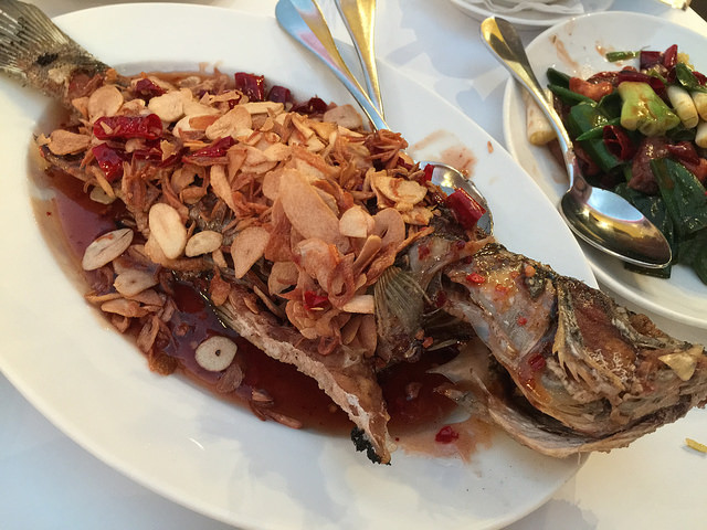 即使是用炸的 鱸魚吃起來還是相當的鮮嫩 一點都沒有被炸老