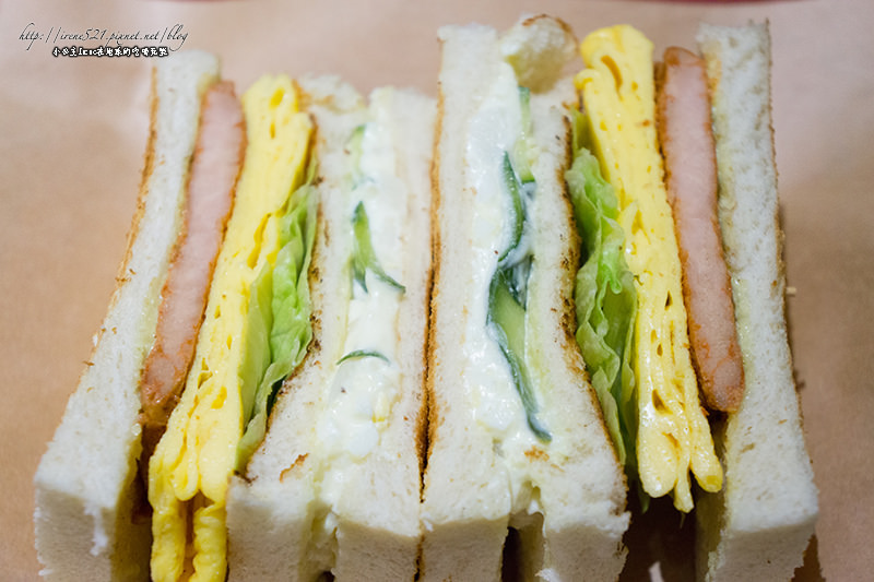 切成兩份的「匈牙利豬排總匯三明治」(NT.80),