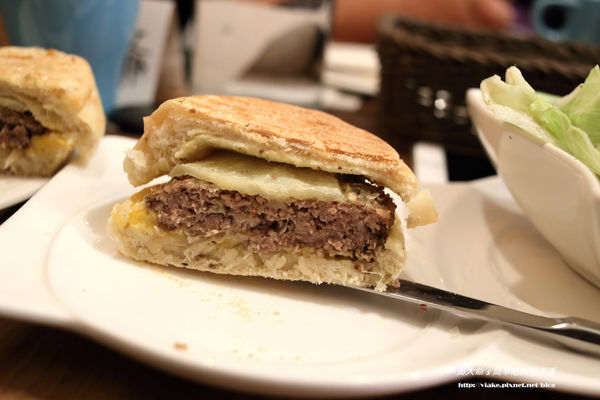 ↑漢堡排肉汁鎖在裡頭,一口咬下,軟嫩多汁,味道很棒