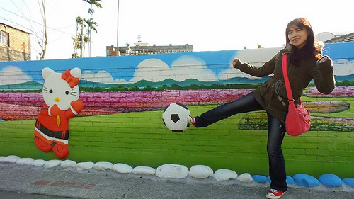 看我踢得一技好球,射門得分哈哈