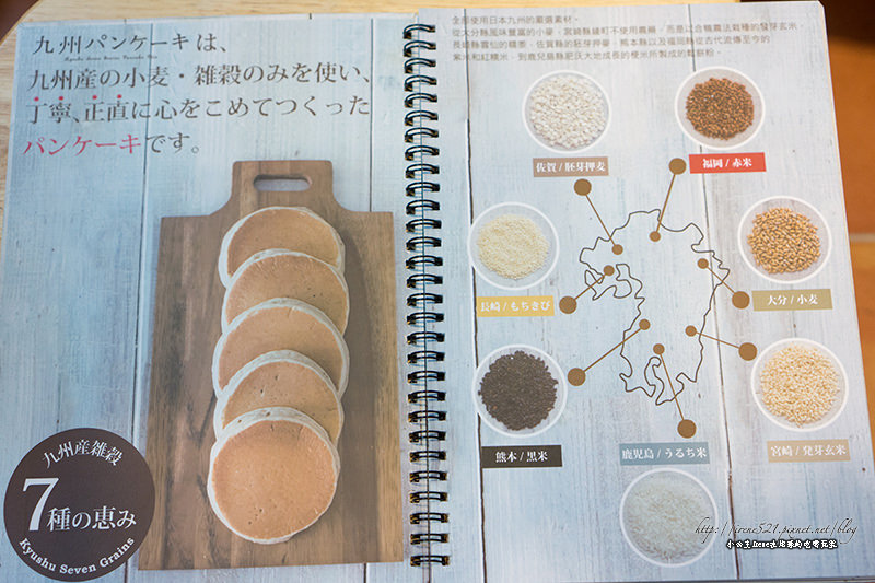 使用九州產的七種榖物小麥所製成的鬆餅粉,包含:熊本的黑米、長崎的もちきび(糯黍)、