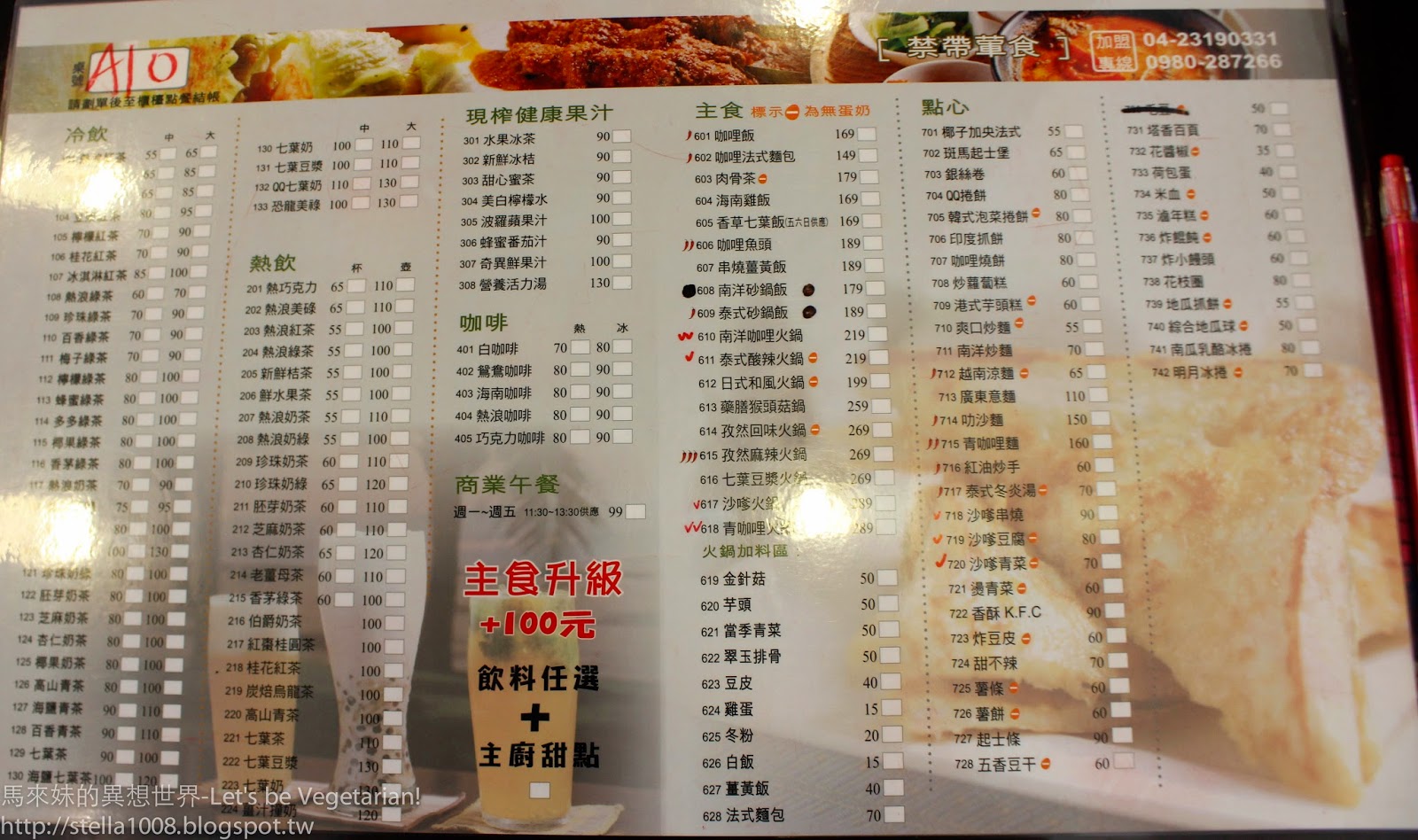 這是熱浪島的菜單~一旁也有標示無蛋奶的餐點^^