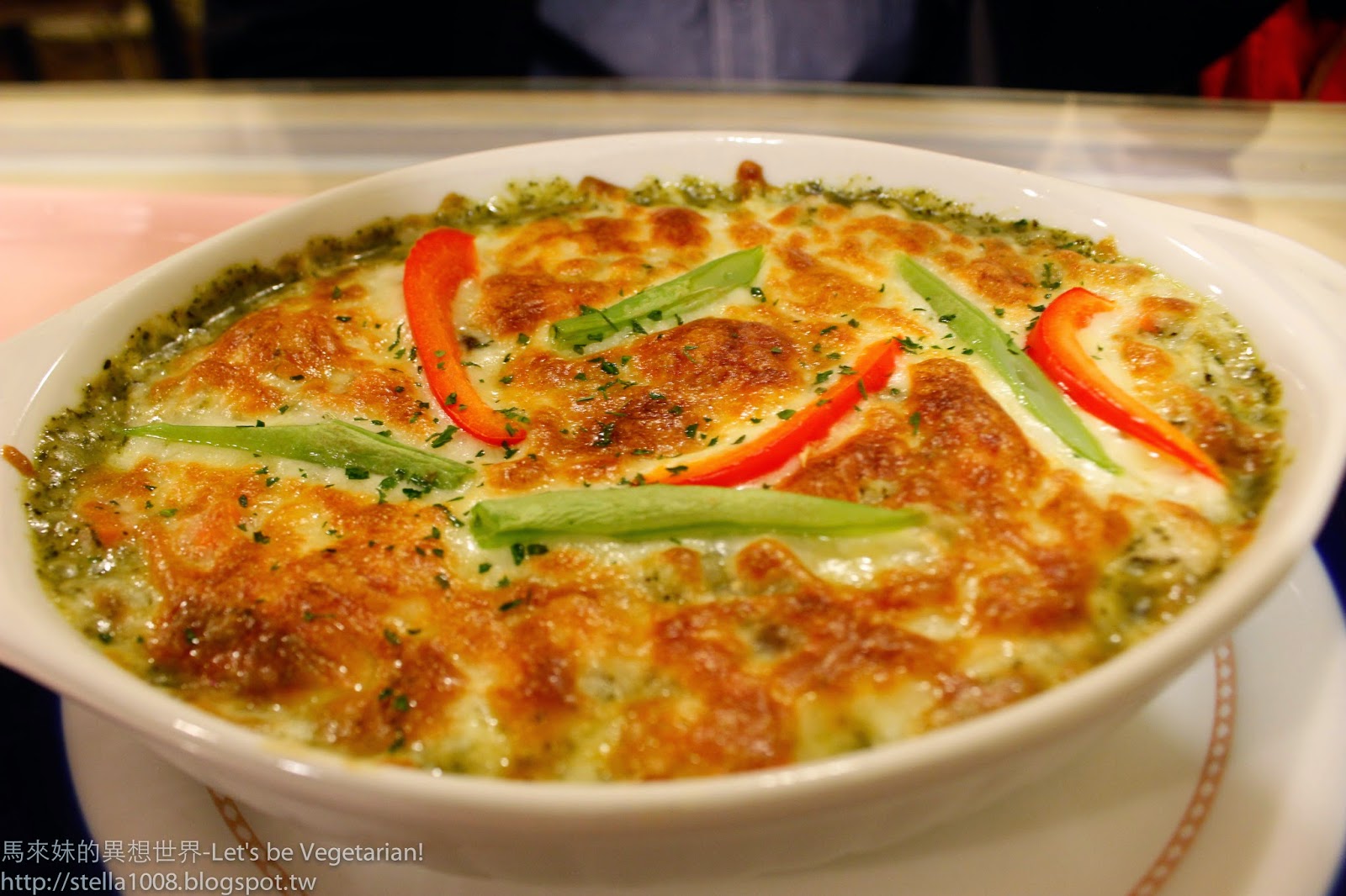 很特別用青紅椒在上面做點綴,焗烤的色澤也超棒!