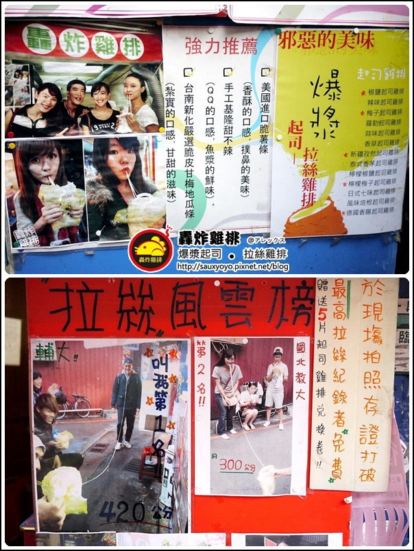 一到達店面就看強力推薦的邪惡起司拉絲雞排,店面也貼滿了部落客來此插旗及許多顧客的留影,