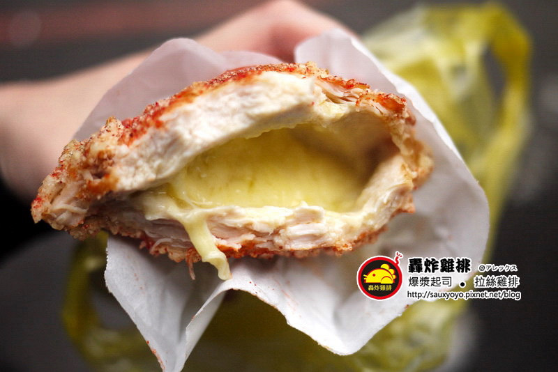 雞排吃到接近中間時就能看到爆漿的起司,