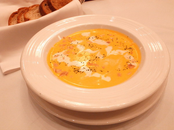 南瓜湯又濃又香甜,熱度恰到好處。
