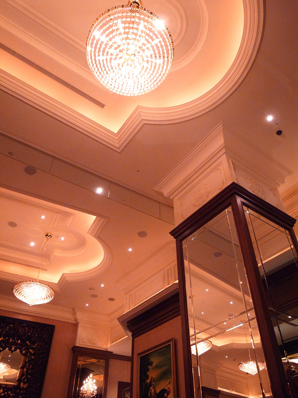 (高挑的天花板與美麗的水晶燈)
