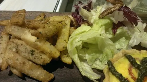 裡頭滿滿的蘑菇與鹹鹹的乳酪搭配底層酥酥脆脆的派皮