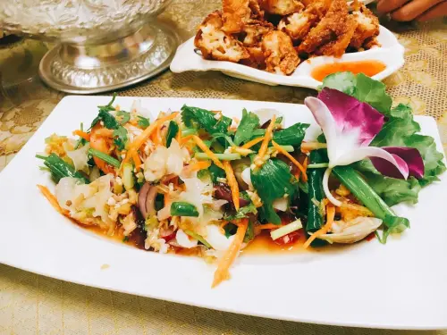 準備了各式蔬菜、水果、果汁、堅果和醬汁