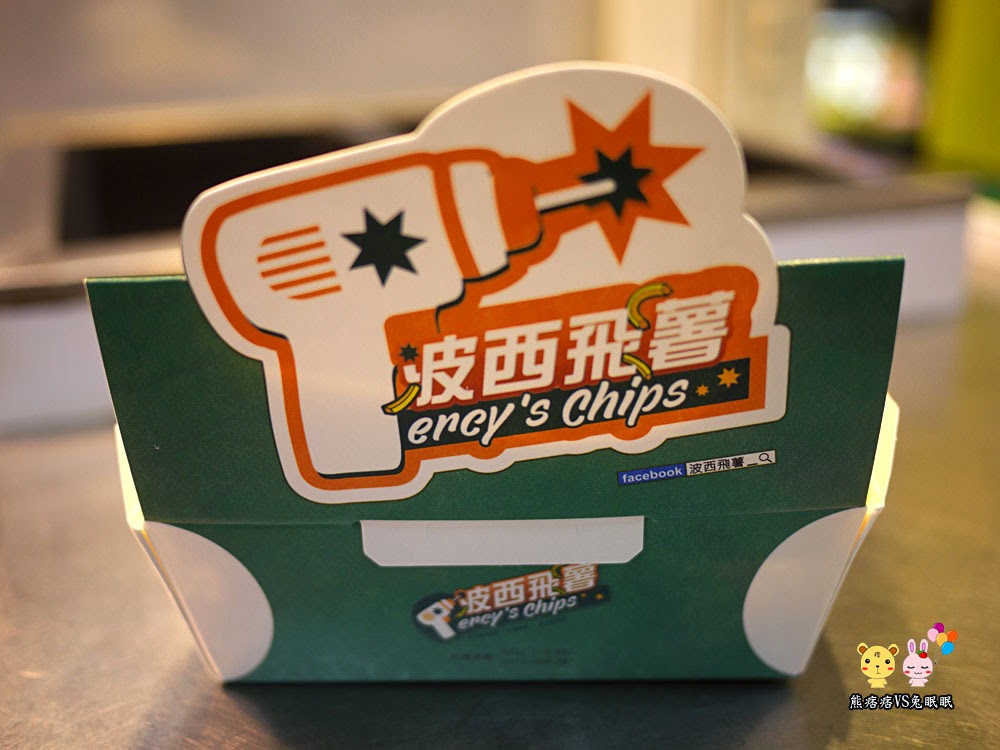 這是波西飛薯的盒子,跟黃金右腿那些的設計差不多,直接將招牌與店名以立牌的方式,當顧客邊走邊吃的同時,也會讓其他遊客注意到。