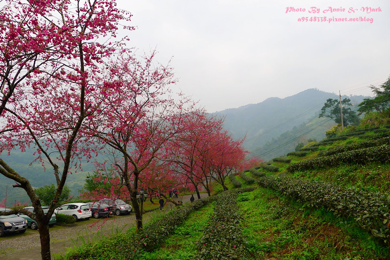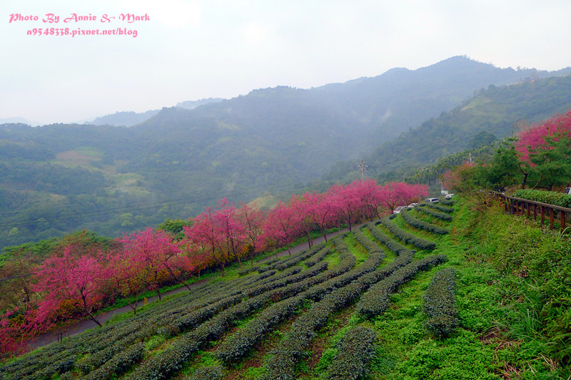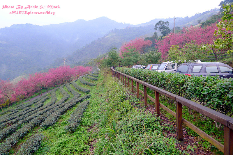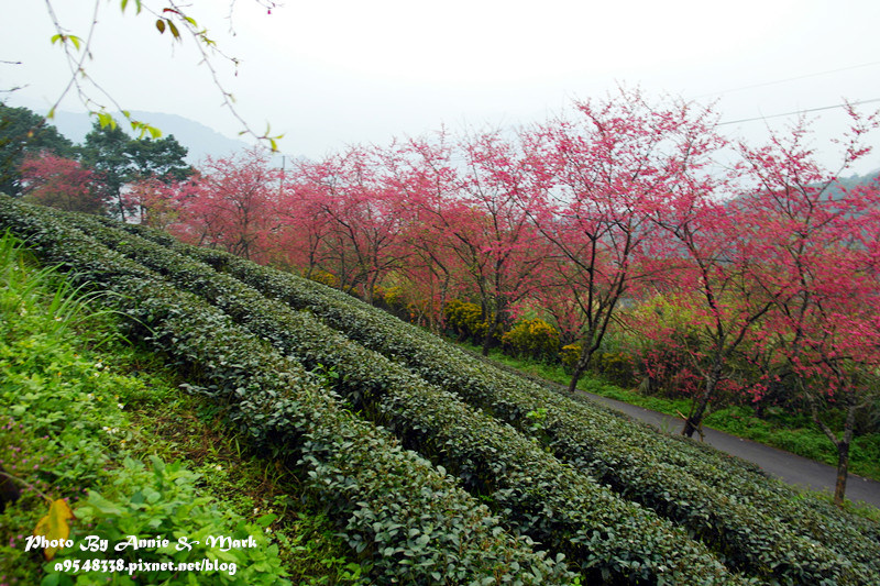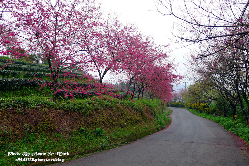 不但有整排櫻花樹,還有一層一層的茶樹相伴,煞是美麗!