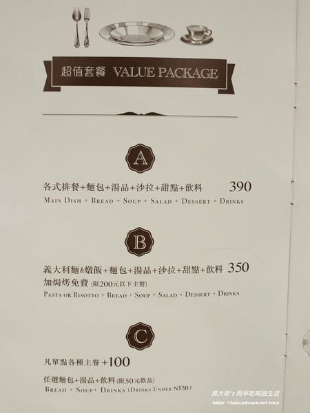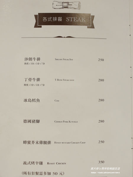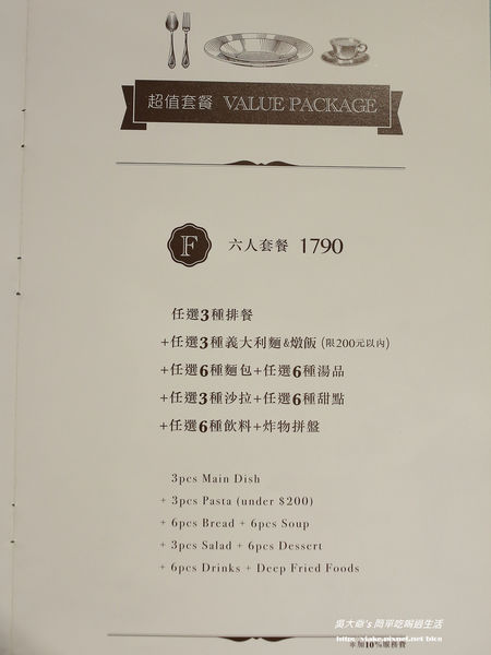 圖上的意思是,最多可以選三種排餐+其他三種主餐(簡稱三排三主)