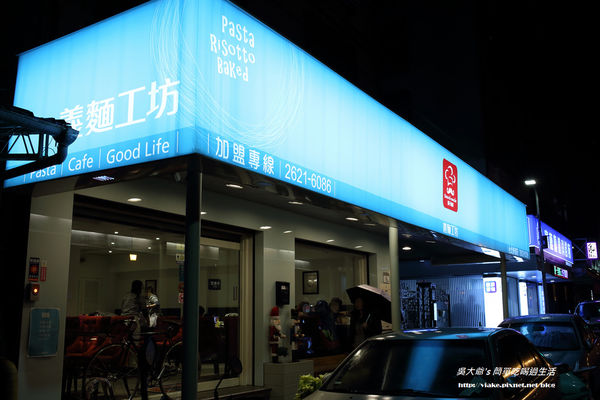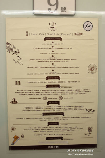 ↑店面,話說一開始我都以為它叫做"義麵工坊"....因為那四個字比鬍子叔叔還顯眼