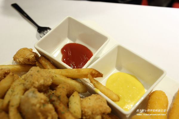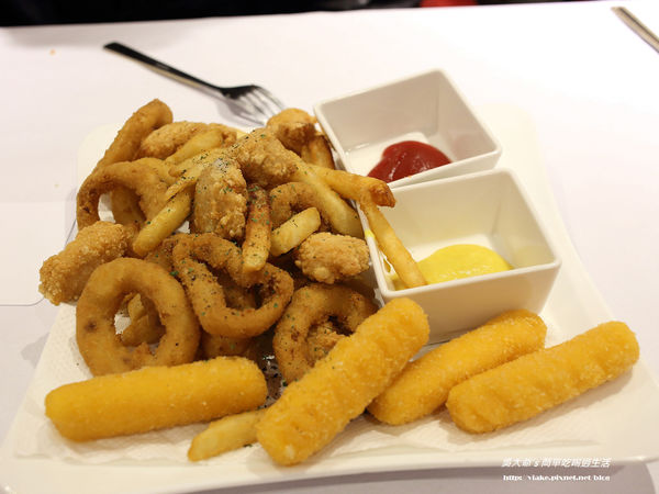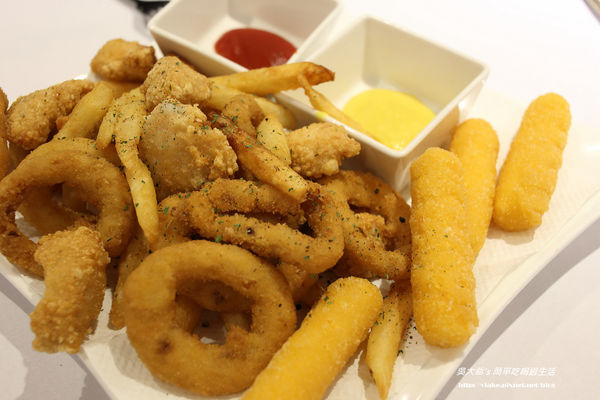 ↑炸物拼盤(薯條、洋蔥圈、雞米花、起士條)